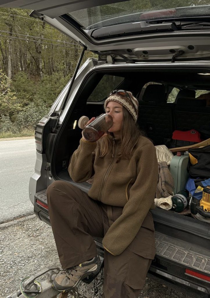 2. Флис поверх лонгслива. Флис не обязан быть нижним слоем. Можно надеть его поверх лонгслива или тонкого свитера — и получить полноценный многослойный образ в духе outdoor без лишнего веса.