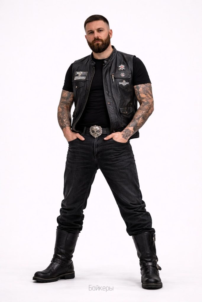 Кожаные жилетки с «цветами» (patches) клуба, фланелевые рубашки, джерси, перчатки и ботинки из кожи. Чопперы и кастомные мотоциклы. Культура братства, дальних поездок, слётов. Место встречи выставки и гаражи. Ценности: свобода, мужское братство, дорога, путешествия и эмоции.